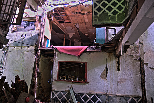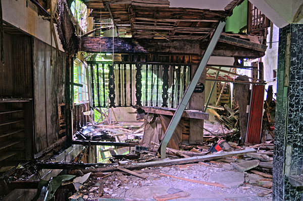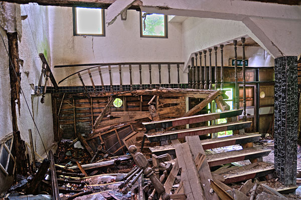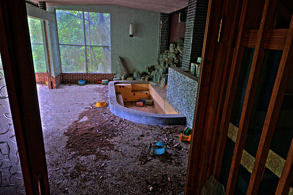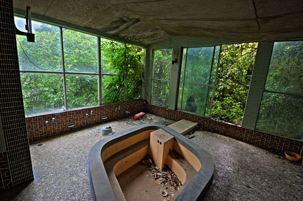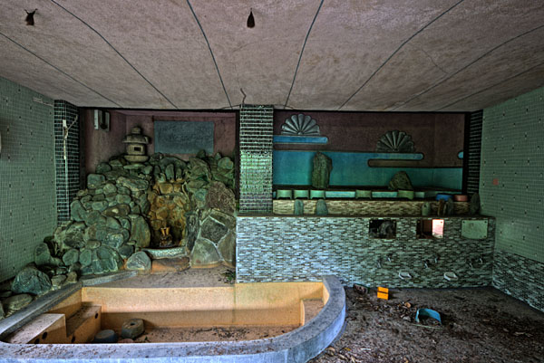| kinshisho | はじめまして、大栄閣で検索したら貴サイトがヒットしましたのでのぞかせていただきました。 実は私は10年程前に仲間6人と探索したことがあるのですが、その頃はまだエントランスの彫刻絵画とかが残っておりました。 それから10年……いやはや想像以上に腐食が進んでいたのでショックでした。 当時はまだ温泉に向かう階段も何とか利用できました。最早探検は死の危険が濃厚ですね。当時ですら深夜の探索だたこともあり危険すぎるほどでしたが今は深夜の探検は不可能ですねこれは。 |