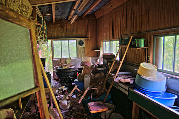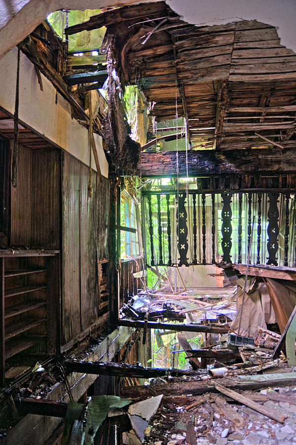 | Θ記号士Θ | それほど崩壊していない状態を見てみたかったです。 やはり木造は雨漏りが大敵のようですね。 ここは過去、上記大家の家に人が住んでいたという記事もありますが、現在は誰もいないようなので、昼でも大丈夫だと思います。 ただ昼でも、階段周りや、二階三階はは、窓がほとんどなく、ほぼ真っ暗に近い状態でした。 特に一階フロア部分の床は危険ですね。 |