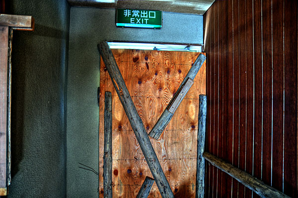 各階のドアも、厳重に板や棒で閉ざされていて、人一人の力くらいではどうしようもない。